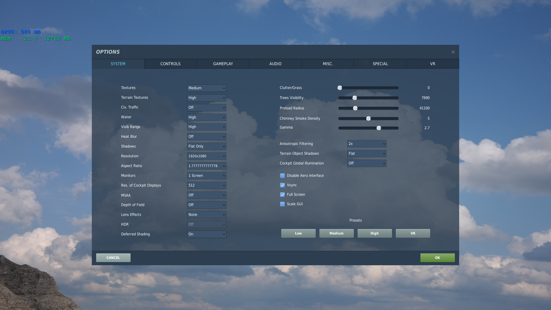 the landscape looks much better. We did notice sporatic issues with the shadows on the p51 skins for instance with it on, but these seemed to clear up as you played in game more? odd but true.)