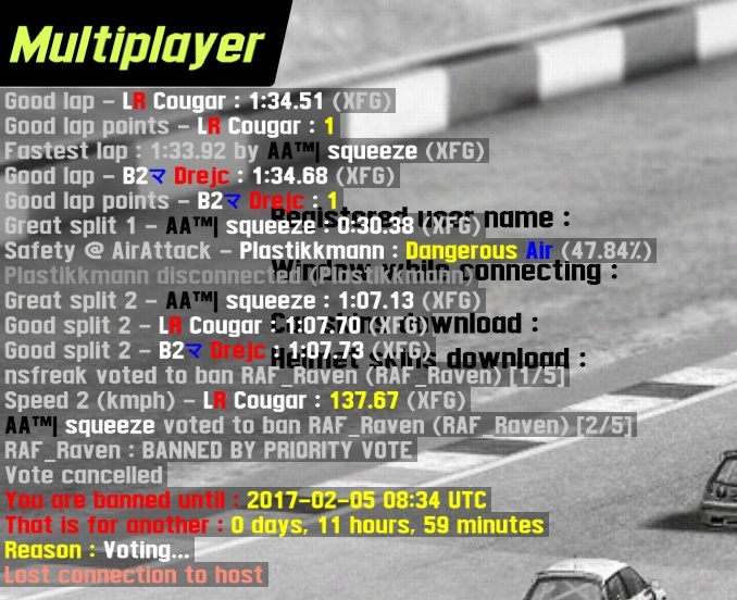 Yeah quite annoying. WIth all the wrecks/lagging and now kicking and banning.