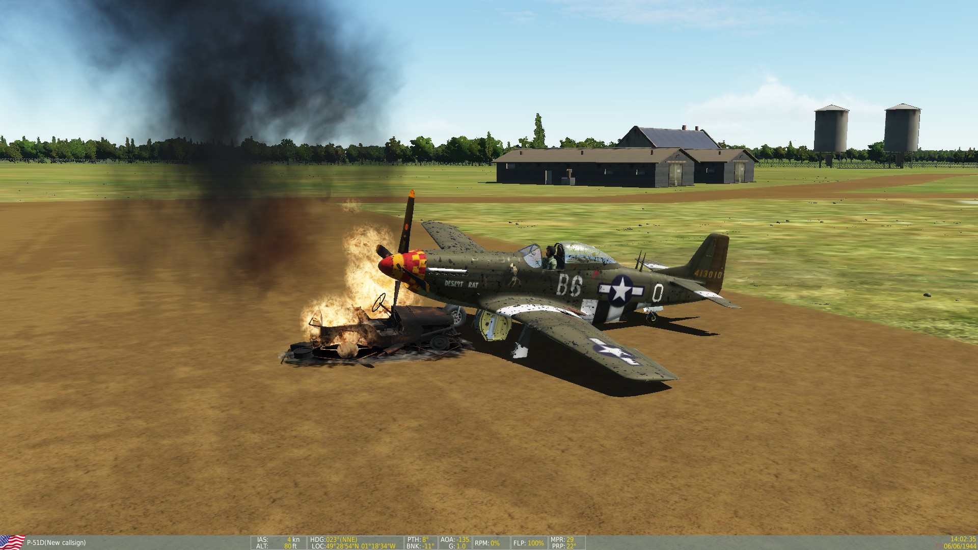 The jeep-sparked conflagration is kind of a time machine—it allows me to transition from engine start directly to a fiery end, without having to go through the time it takes to taxi, take off, and THEN crash.